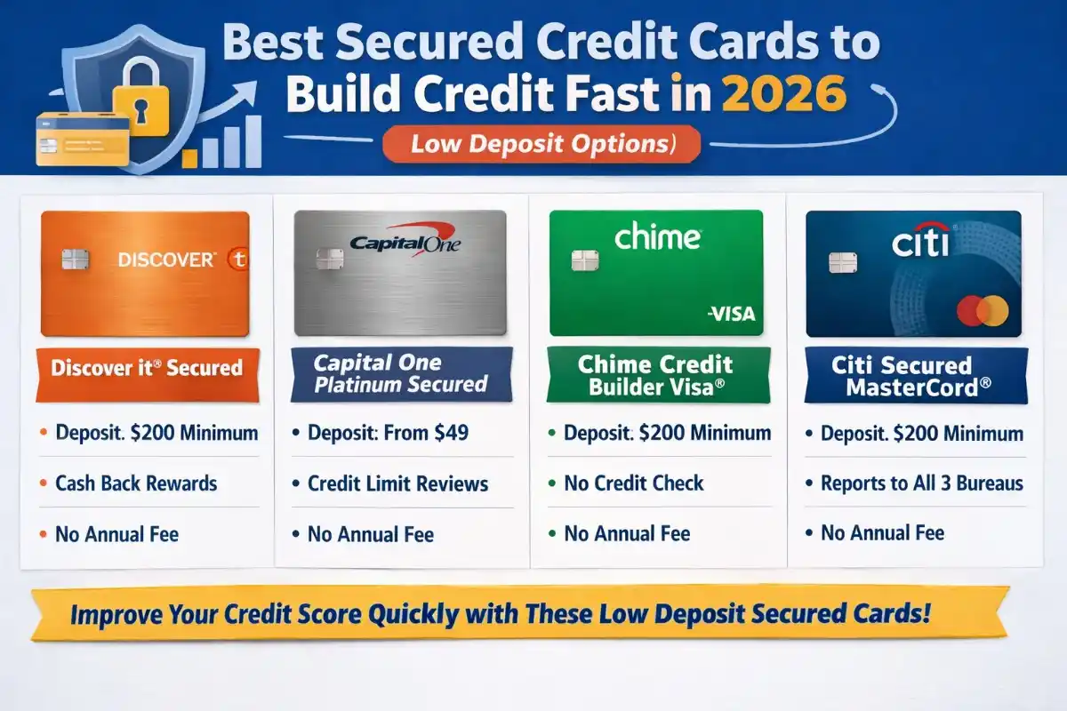 This comprehensive 2026 guide compares the best secured credit cards with low deposit requirements, explains how they work, and shows you how to maximize your credit score improvement safely and efficiently.